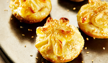 - Preenche as porções de massa folhada com massa de amêndoas e fecha as trouxinhas. Leva ao forno.